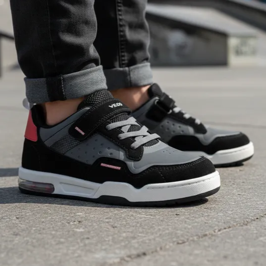 Zapatilla con planta cementada y aire , capellada de cuero sintetico, ajuste de velcro y elastico